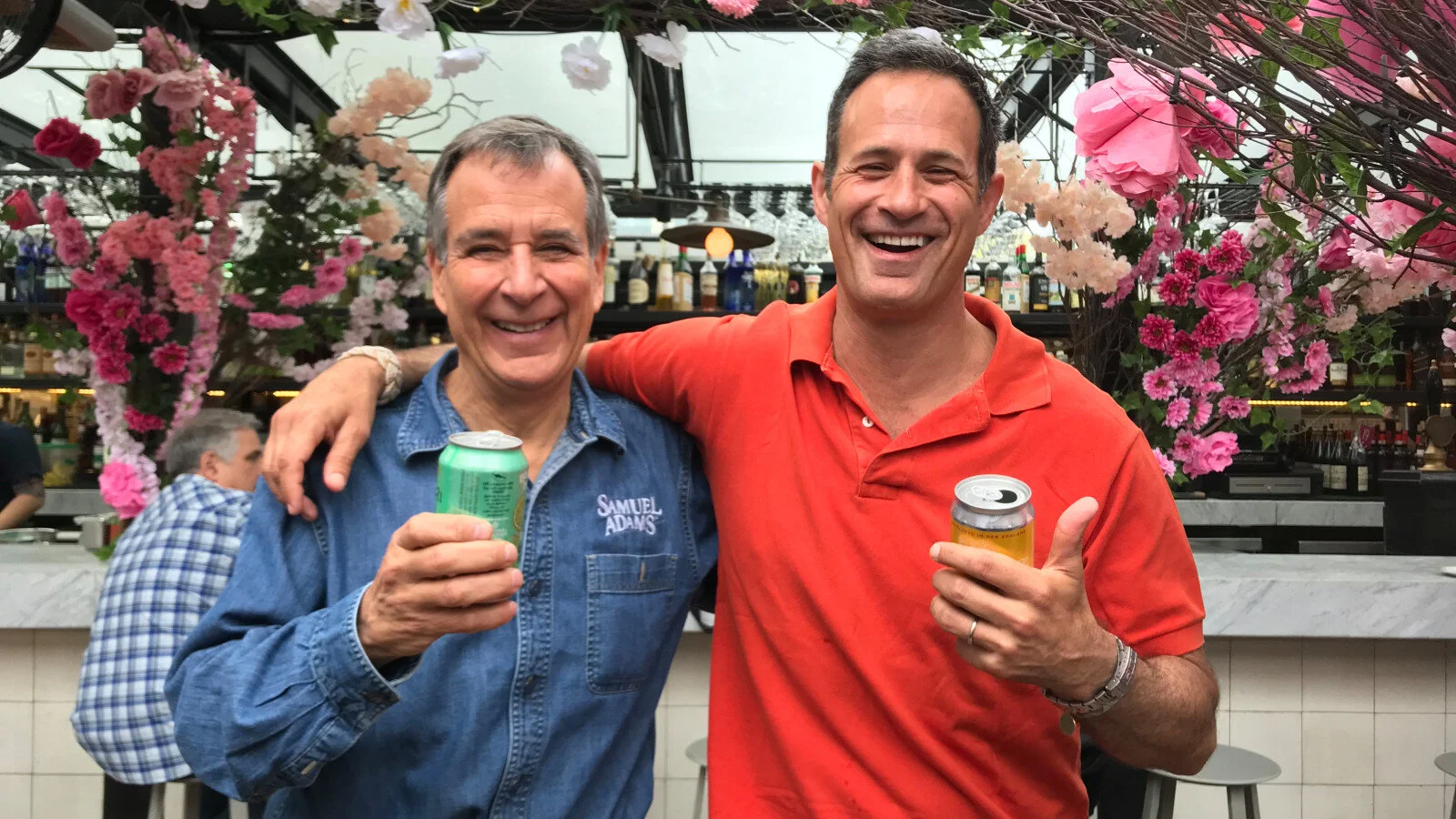 Jim Koch (left) and Sam Calagione at Eataly in New York City.