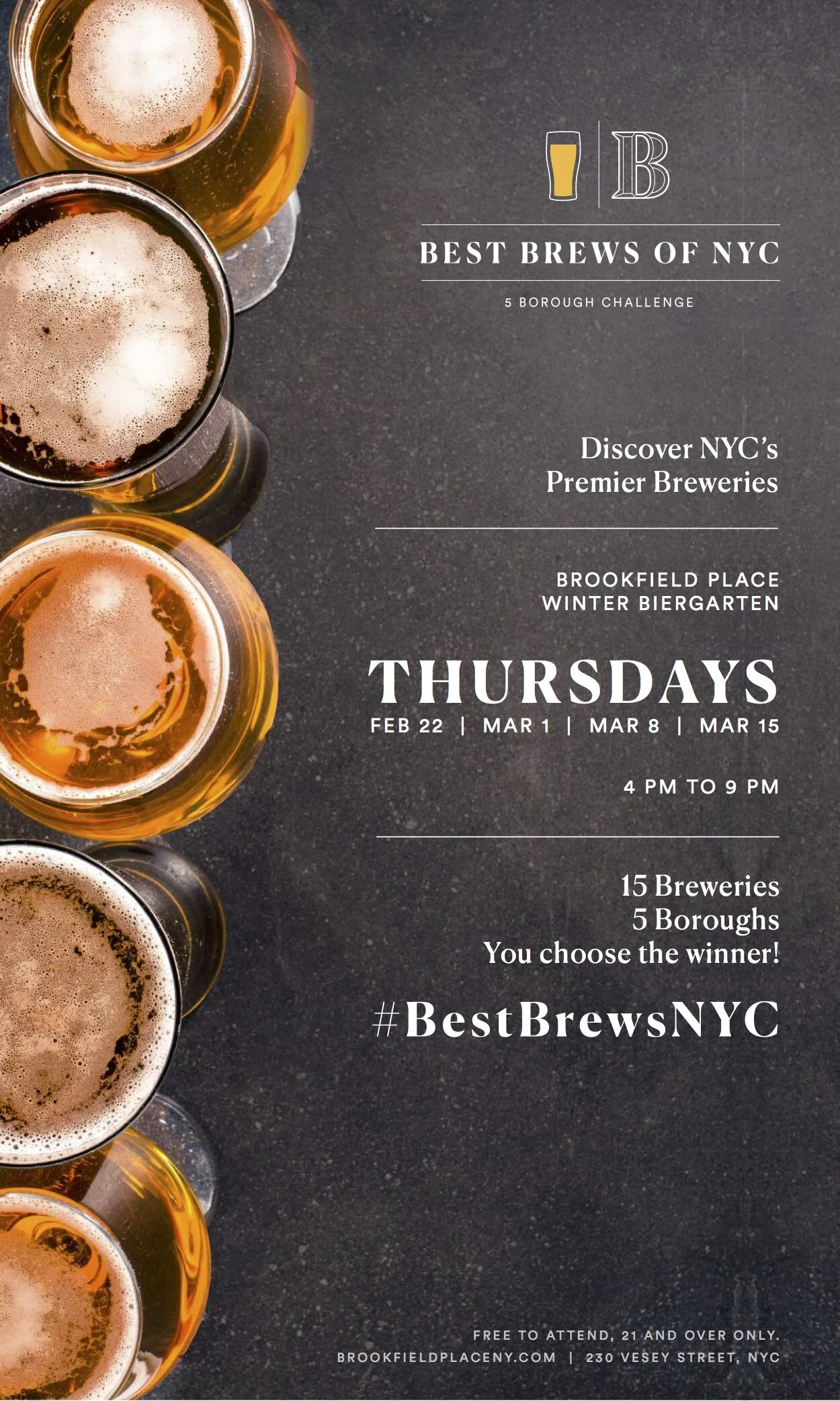 Oh hey, have you ever wanted to drink New York City's best beers and ask me any and every question your heart could desire? Lucky you, I'll be at Brookfield Place tonight judging the final event of their Best Brews of New York City event series. Who will be the winner? Everyone! Because: alcohol.